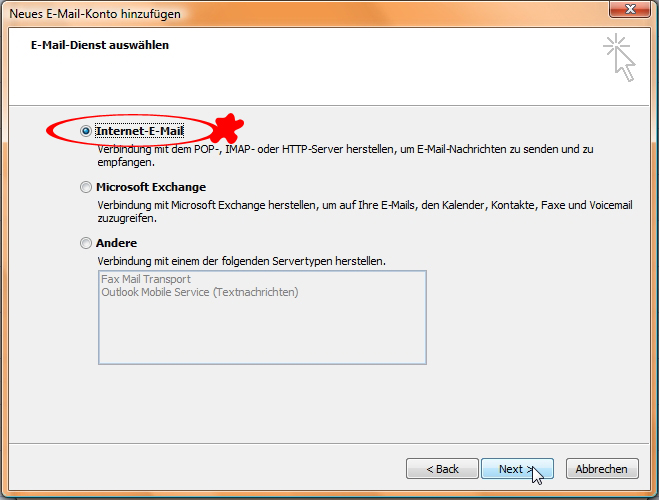 Man hat wir oben erwähnt die Möglichkeit zwischen POP3 und IMAP. Bei weiterführenden Links findet sich ein Link zu Wikipedia für mehr Informationen. Dort wird genau erklärt was die einzelnen Unterschiede sind. Im wesentlich lässt sich sagen: POP3 ist in der Funktionalität sehr beschränkt und erlaubt nur das Auflisten, Abholen und Löschen von E-Mails am E-Mail-Server.