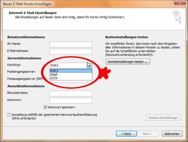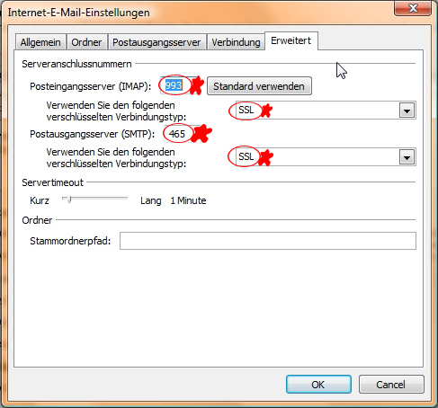 HINWEIS: Bei POP3 ist der Port anders und die Ports auch verschieden bei SSL und TLS. Siehe hierzu E-Mail.